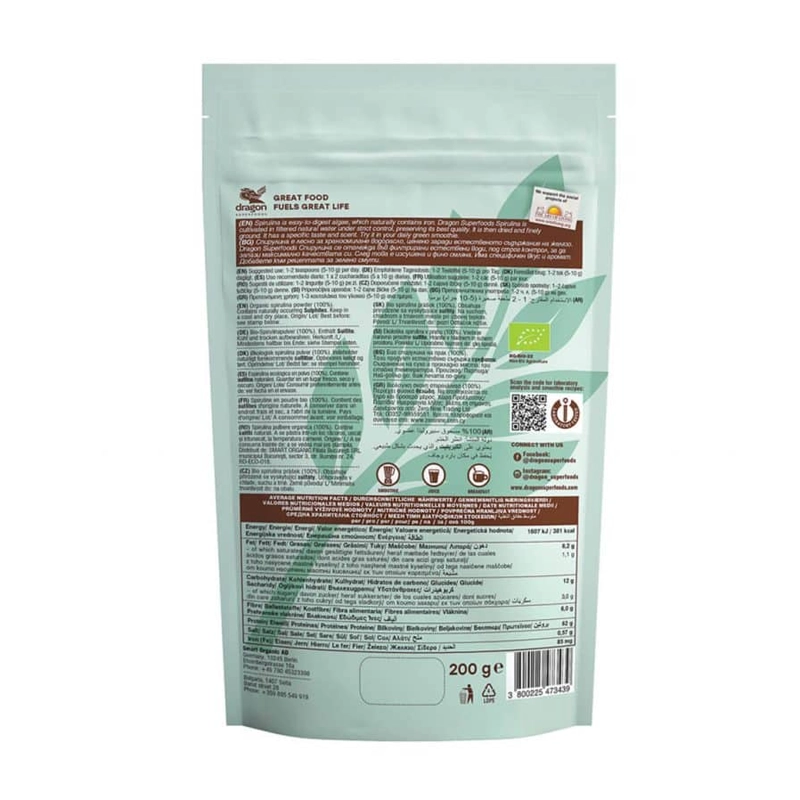 Thành phần của Bột tảo xoắn Spirulina Dragon Superfoods 200gr